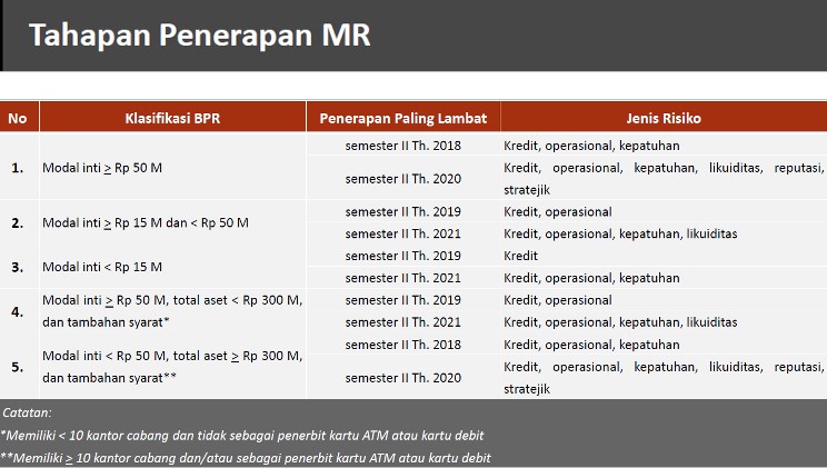 Sesuai POJK No. 13 / POJK 03/ 2105 tentang penarapan Manajemen Risiko BPR